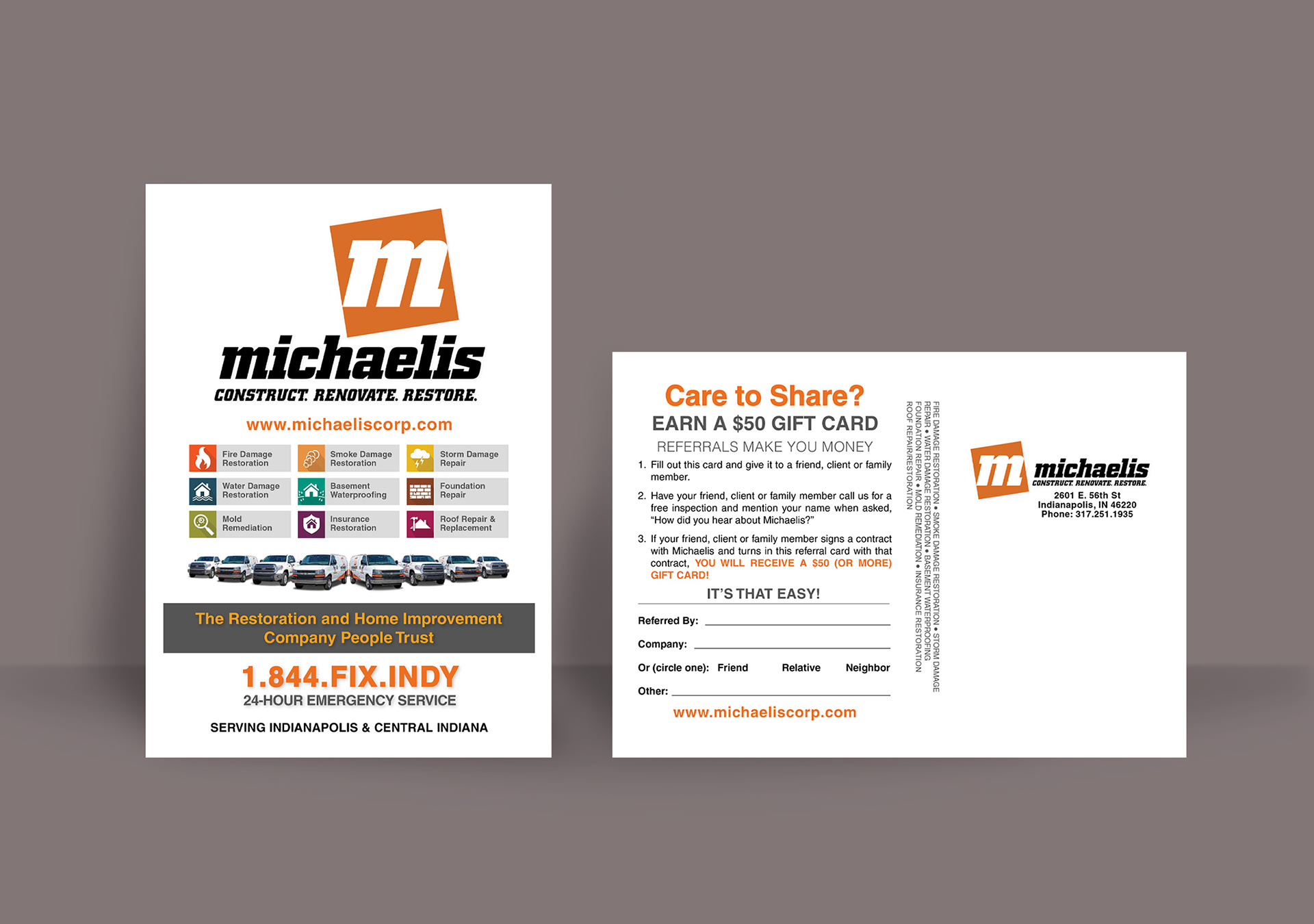 Designed and updated marketing materials for Michaelis Corporation, including flyers, a referral card, and trifolds, to align with their newly updated company website.